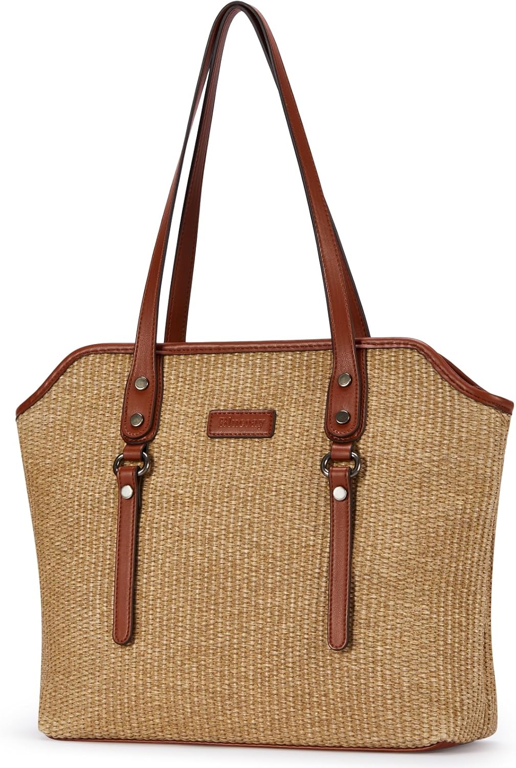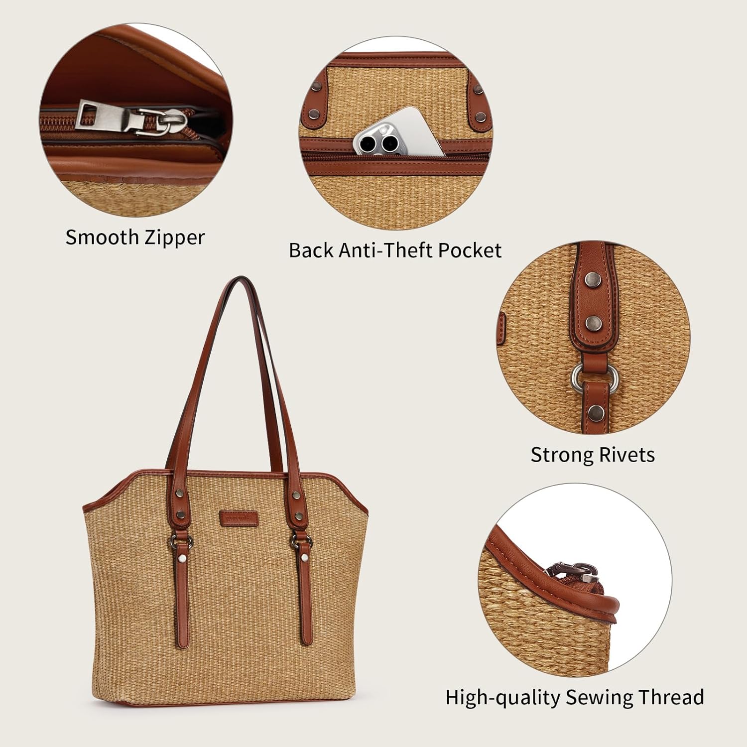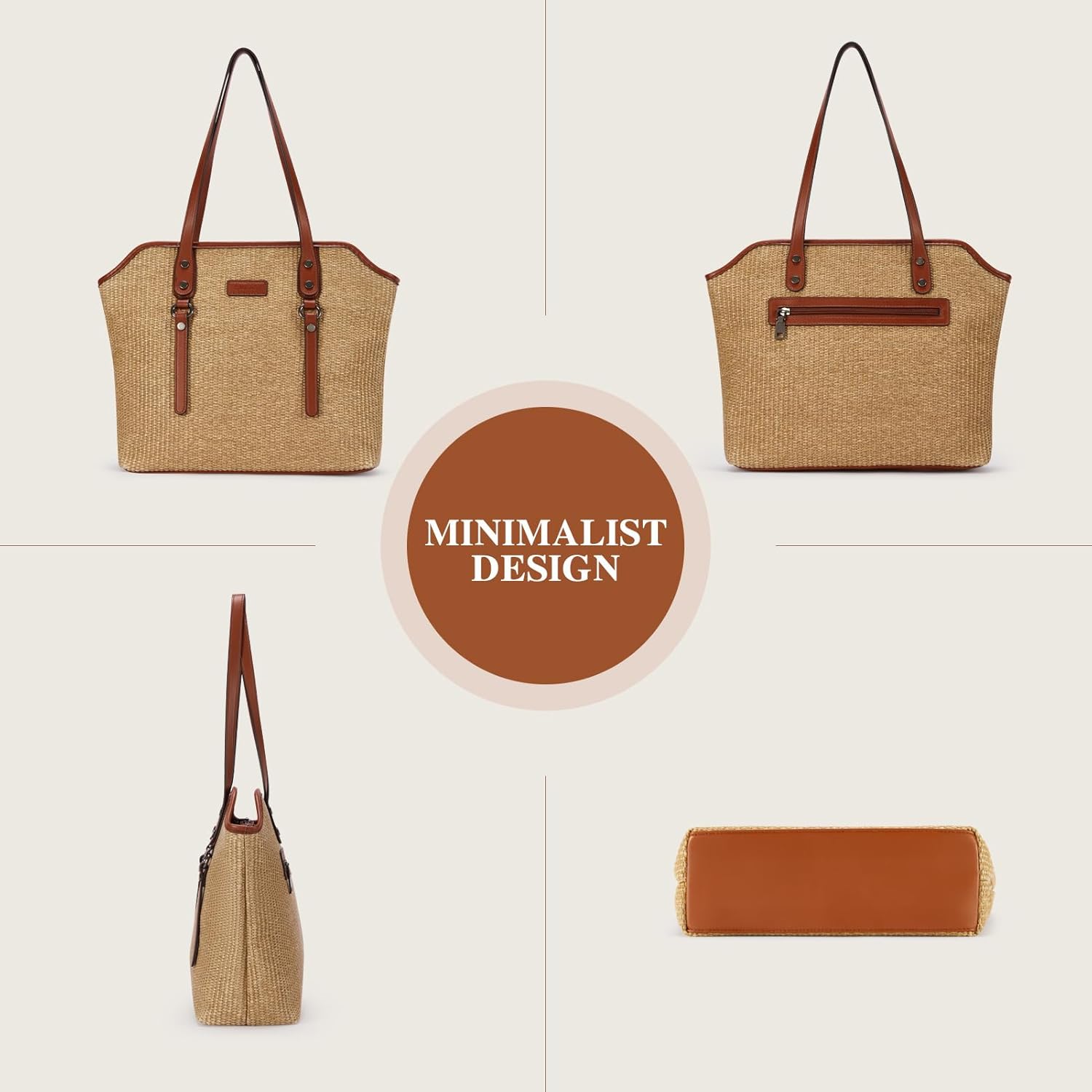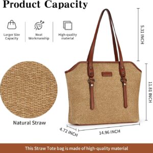 Blucoay Straw Tote Bag for Women,Tote Purses for Women With Zip Pockets,Summer Beach Shoulder Bags for Daily,Travel,Work