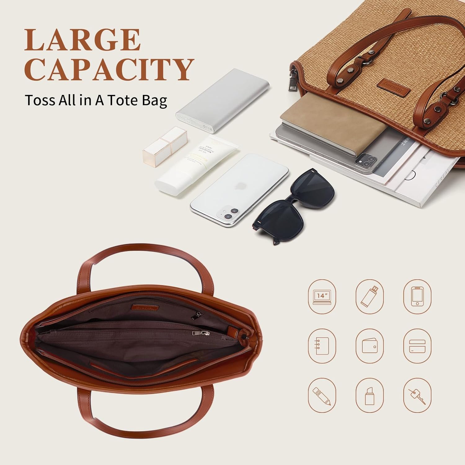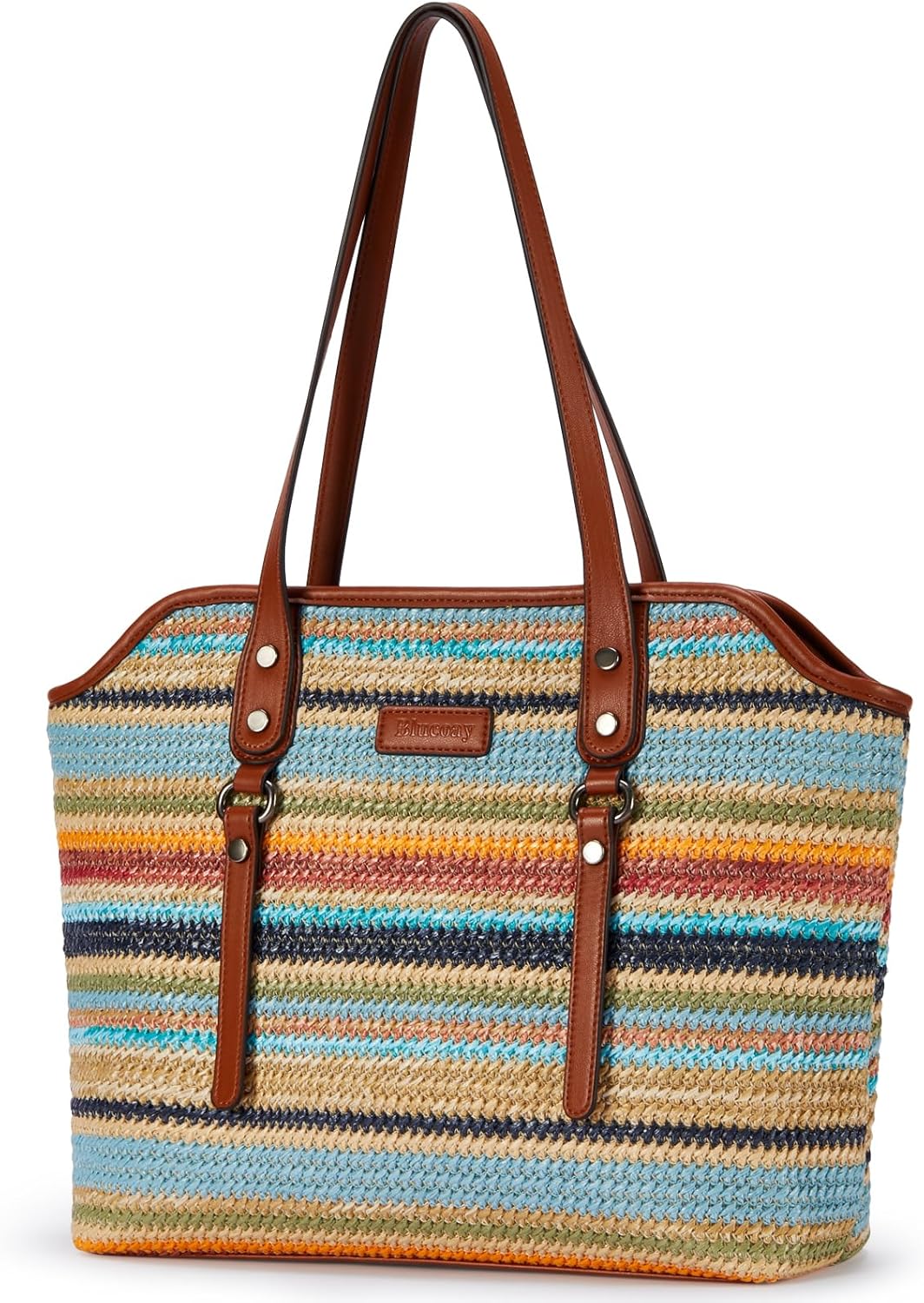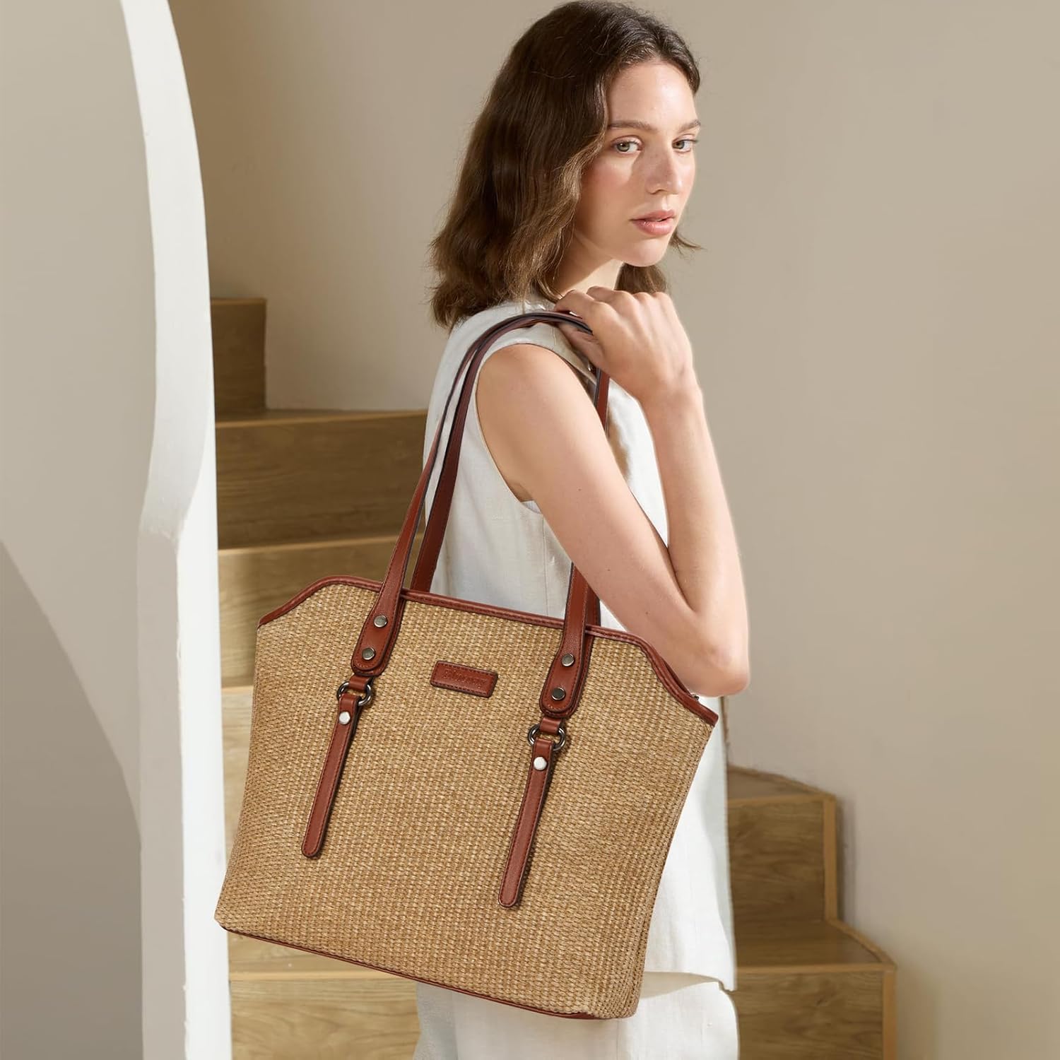 Blucoay Straw Tote Bag for Women,Tote Purses for Women With Zip Pockets,Summer Beach Shoulder Bags for Daily,Travel,Work
