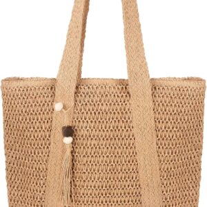 - 【Material】 This tote bag is made of high-quality Straw woven, durable and lightweight, and foldable so that you can put it in your suitcase when traveling.