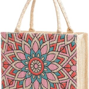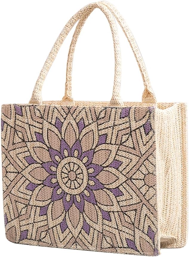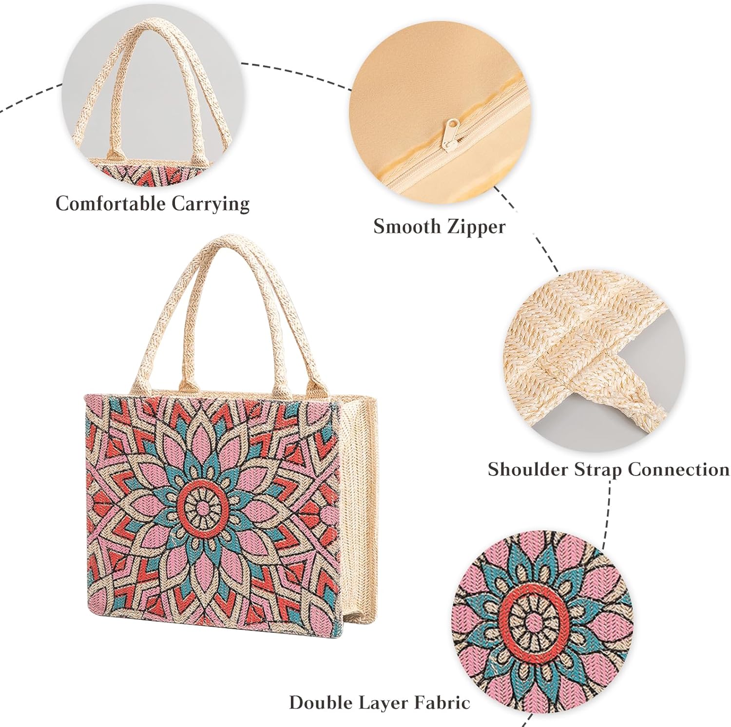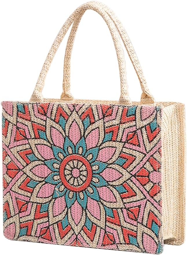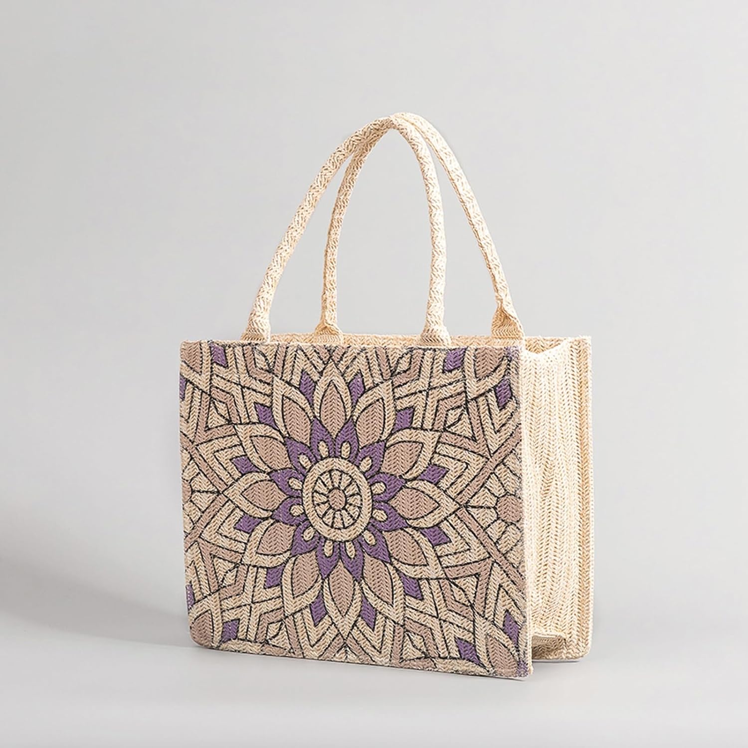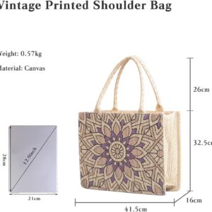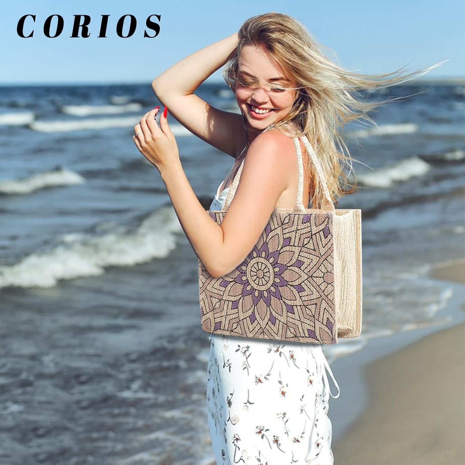 CORIOS Ethnic Style Tote Bag for Women Canvas Handbag Bohemian Top Handle Bag Summer Beach Bag Large Capacity Shoulder Bag