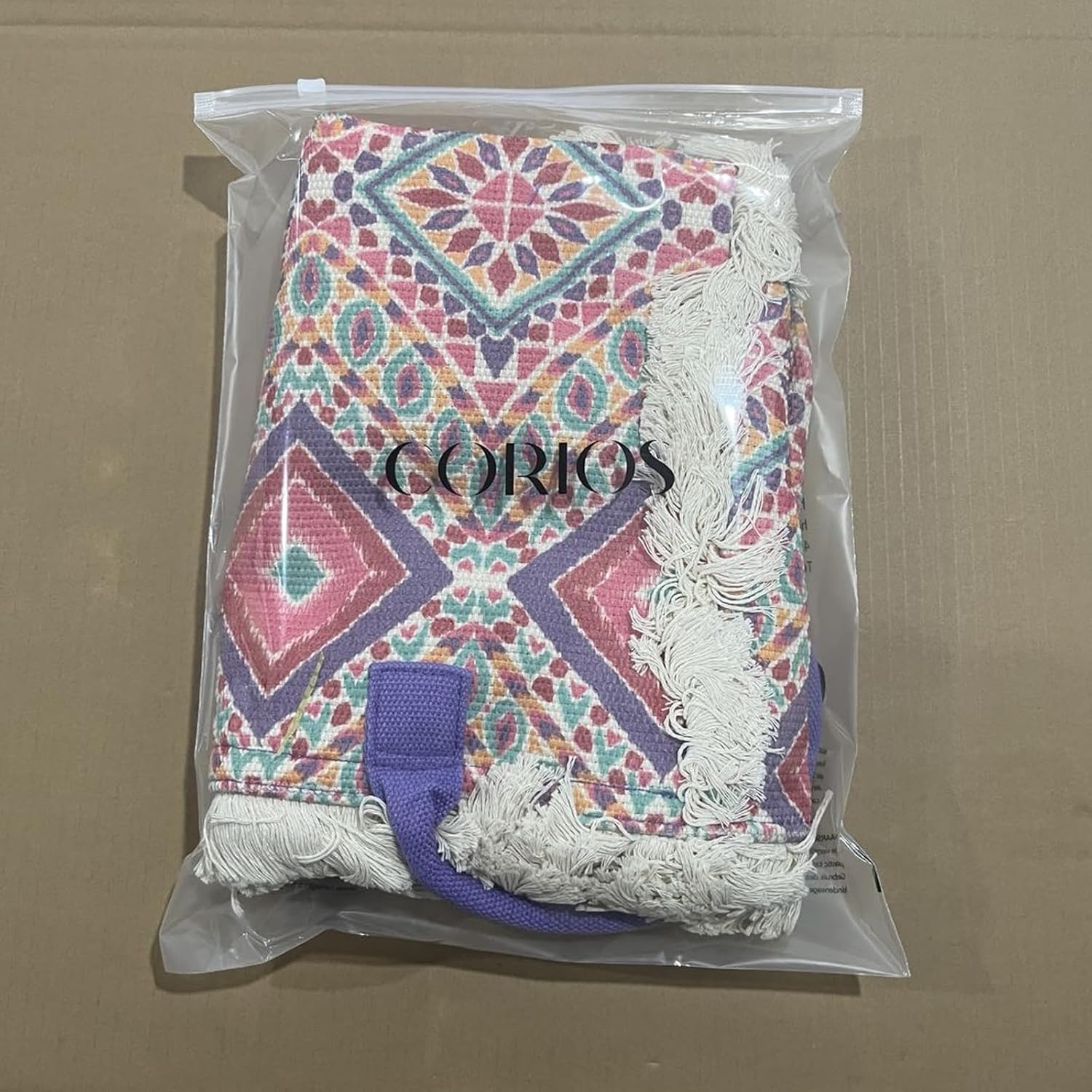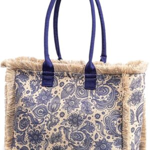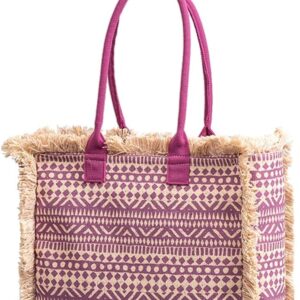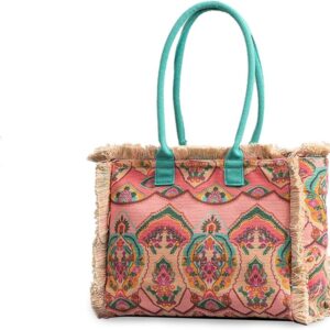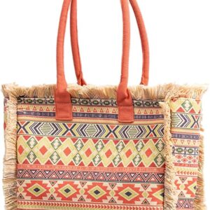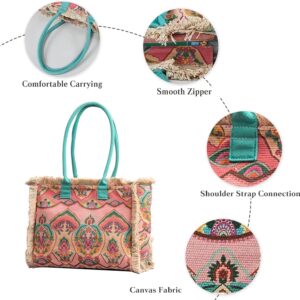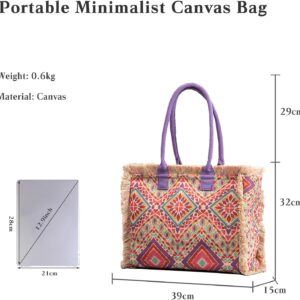 CORIOS Women Canvas Handbag Ethnic Style Tote Bag Retro Shoulder Bag with Tassels Summer Beach Bag Bohemian Top Handle Bag