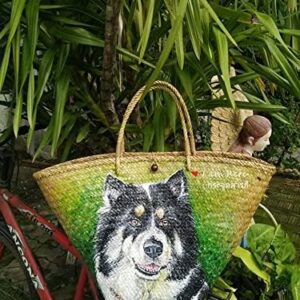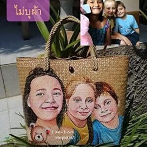Custom, Made To your Own Order Portrait Painting Woven Straw Bags Summer Beach Tote Bag for Women 100% Handmade (A14)