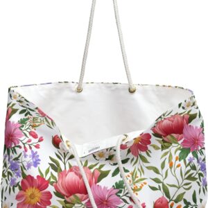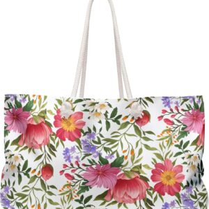 Floral Summer Beach Bag for Women Vacation Travel Tote Bag Reusable Bag for Pool Picnic Shopping Bag Our oversized Weekender Tote is perfect for your weekend at the beach or in town. The wide-mouthed, durable bag holds a generous amount of personal items and is easily held by its thick rope handles. 100% Spun Polyester Exterior One size: 24″ x13″ (60.9 cm x 33 cm) Cream sheeting interior lining (50% cotton, 50% polyester) T-bottom Assembled in the USA from globally sourced parts Please note: Size tolerance 0.75″ (1.9 cm)