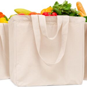 Heavy Duty Grocery Tote Bag – Extremely Sturdy Extra Large Canvas Grocery Bag with Double Handles and Real Pockets – Premium Quality, Reusable, Washable and Foldable Cotton Cloth Grocery Bag (1 Bag)