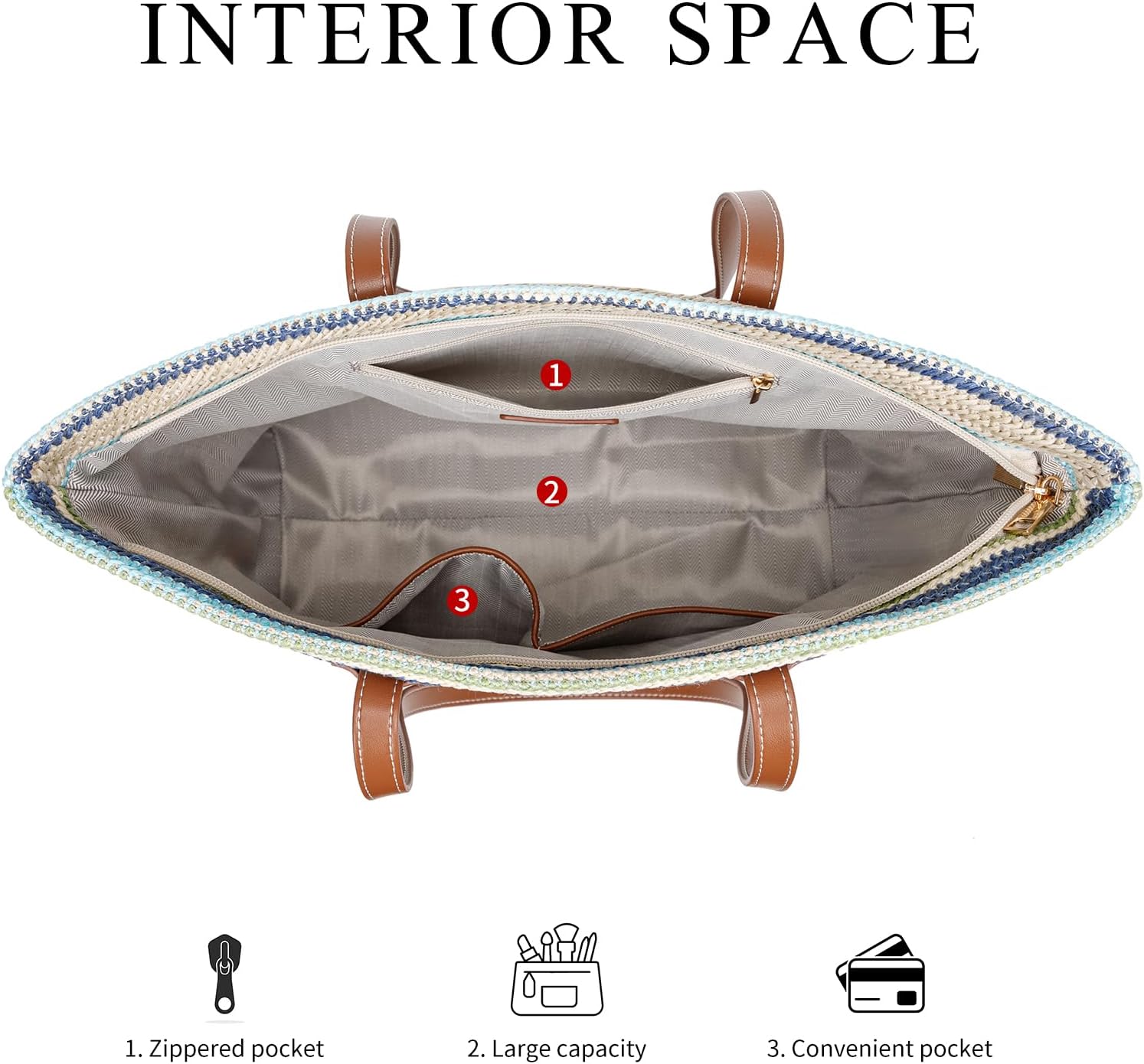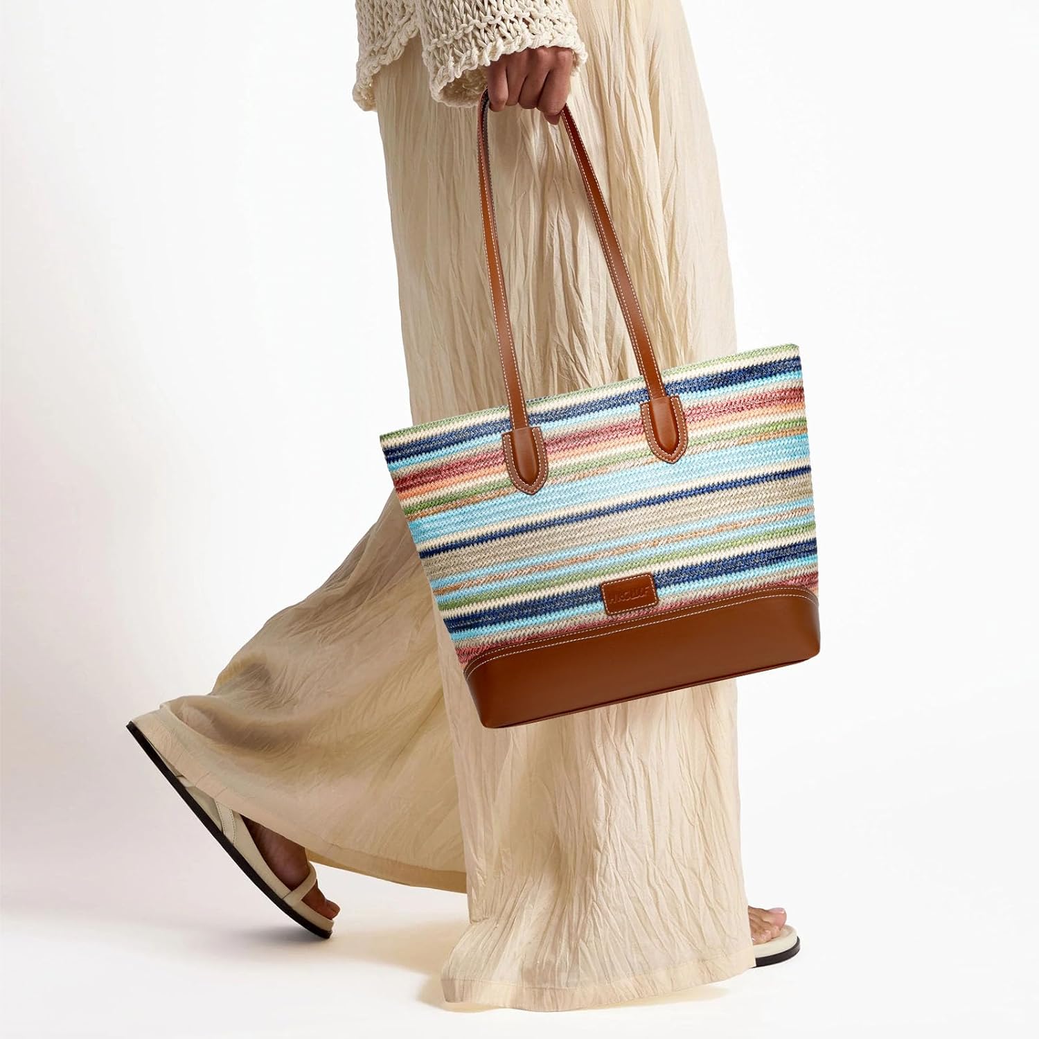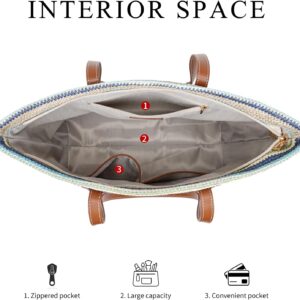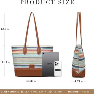 HKCLUF Tote Bag for Women,Woven Shoulder Bag for Woman Vegan Leather Hobo Purse Satchel Handbags With Zipper Pockets