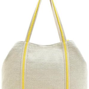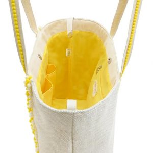 - Adorned with Pompom Accents Features charming pompom details that add a fun, bohemian twist to the classic tote silhouette.