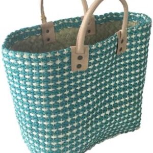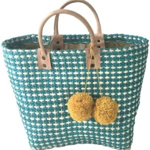 Add a splash of summer charm to your beach adventures with this delightful Mar Y Sol Hadley woven sisal basket tote. Each handcrafted bag features an eye-catching geometric pattern and comes adorned with playful pom pom fruit charms that dangle from genuine leather handles. Available full size or mini size in vibrant colors including turquoise, pink, navy, and yellow. The full size is spacious market tote offers both style and functionality. The Hadley Mini Tote offers versatility without compromising character. Whether it’s carried by your mini for beach days and playdates, or styled by an adult as a compact statement handbag. The durable sisal construction maintains its shape while providing ample room for beach essentials, shopping finds, or daily necessities. The classic basket weave design creates an airy texture that’s perfect for sunny days, while the leather handles ensure comfortable carrying. This versatile tote transitions seamlessly from beach outings to farmers’ markets to everyday errands, making it an essential summer accessory. Each bag showcases the beauty of handwoven craftsmanship, with subtle variations that make every piece unique.