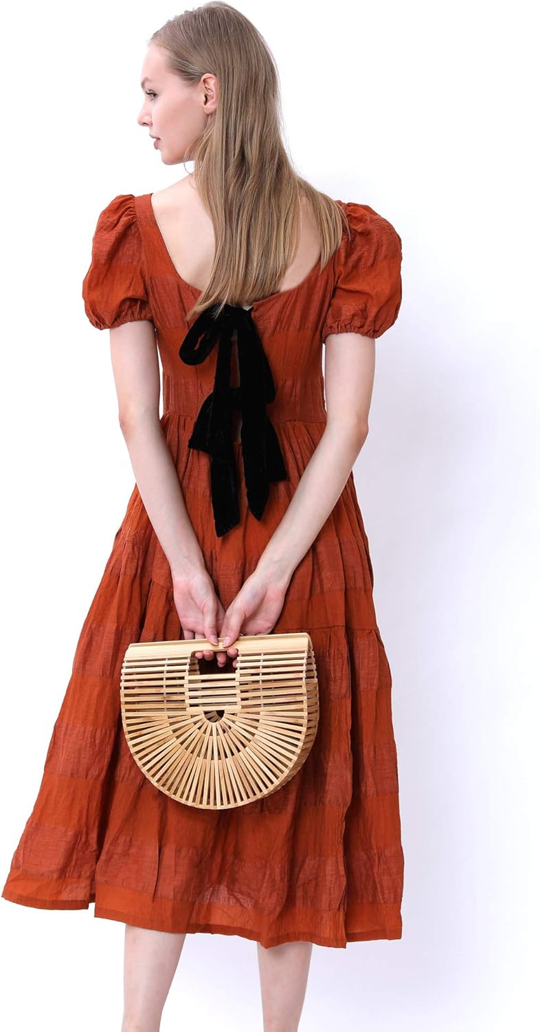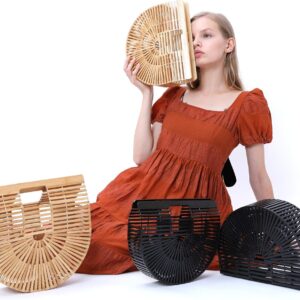 Miuco Womens Bamboo Handbag Handmade Large Tote Bag Straw Beach Bags Beach Purse Size