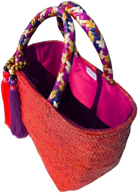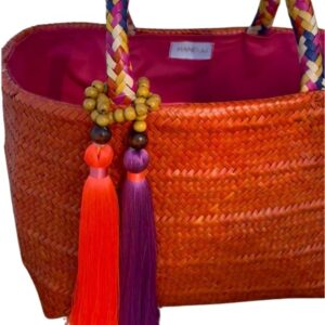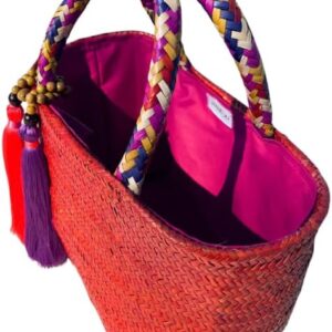 Orange Straw Tote Bag – Handwoven Artisan Beach Bag, Large Summer Shoulder Bag for Women