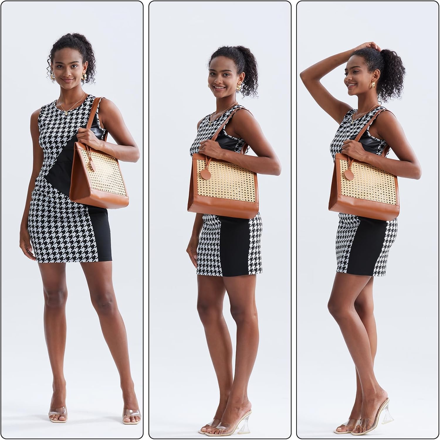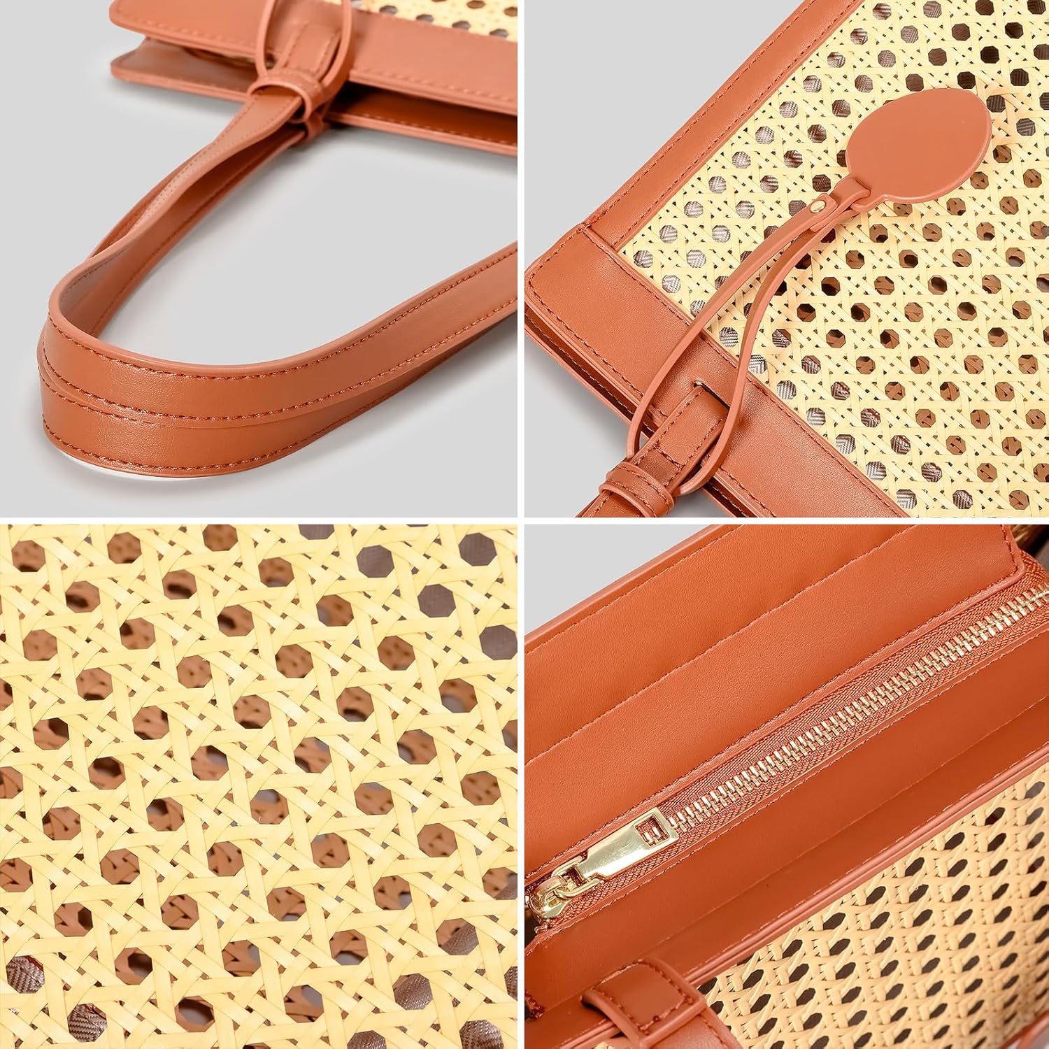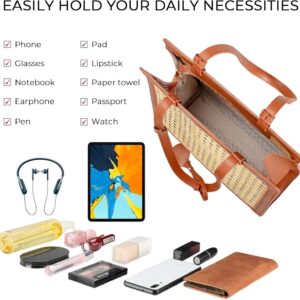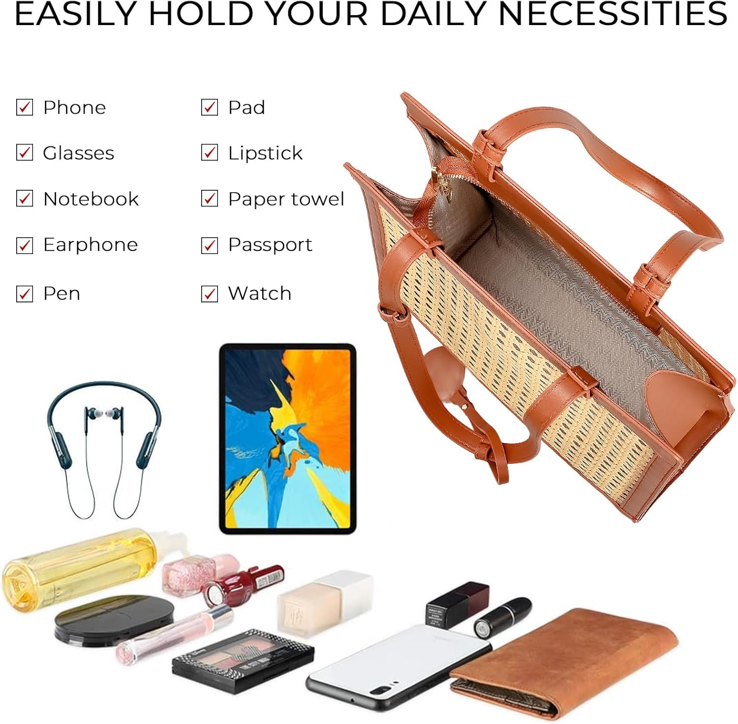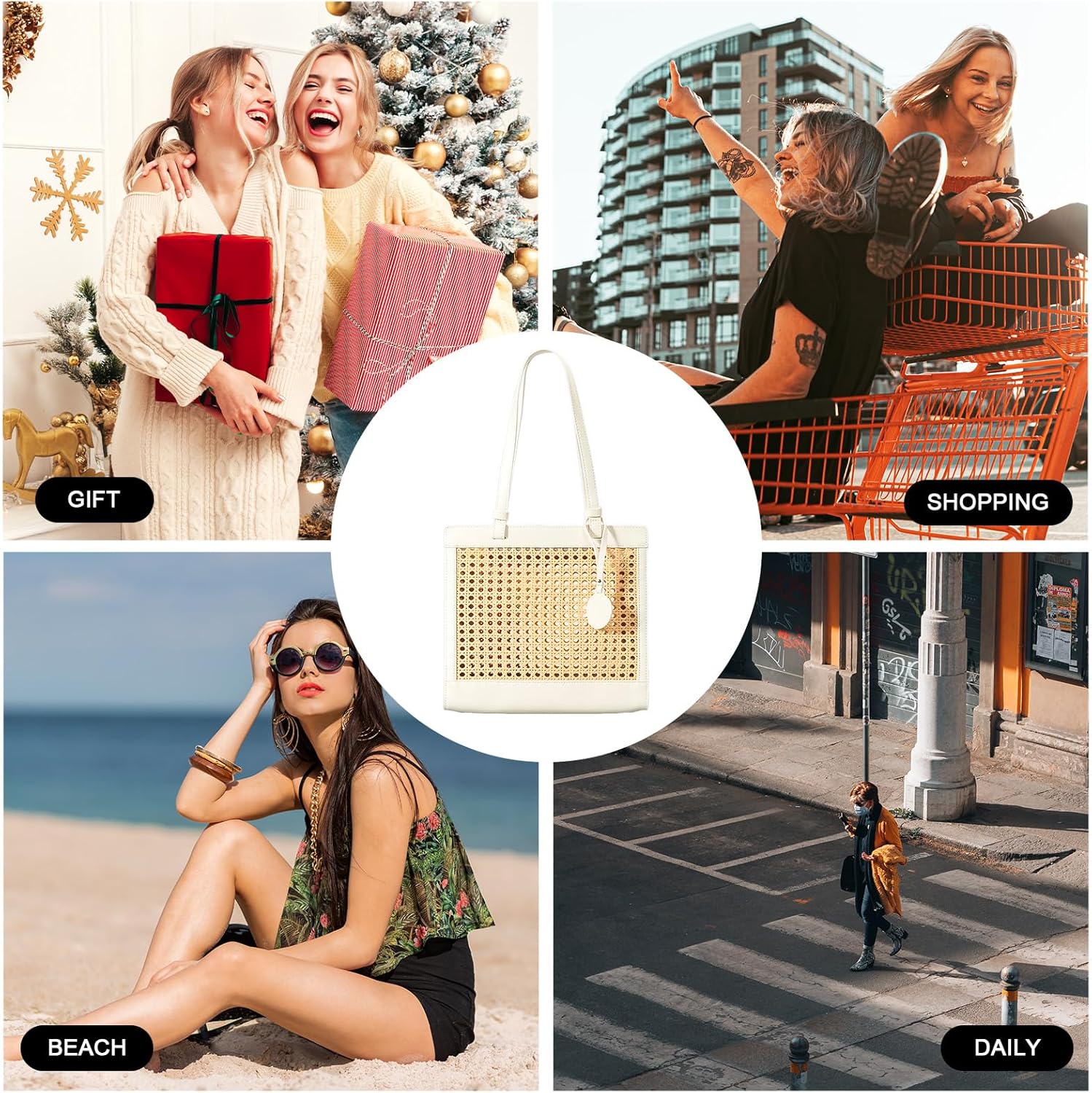 OWGSEE Straw Beach Bag for Women Summer Woven Rattan Tote Bag Straw Purses and Handbags for Vacation with Pendant