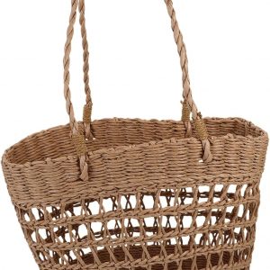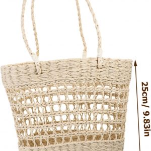 SOLUSTRE Hollow Woven Beach Handbag for Women Aesthetic Straw Tote Bag for Summer Seaside Casual Outings and Daily Use Lightweight and Versatile Storage