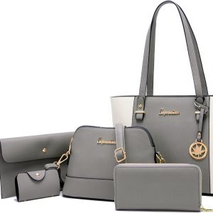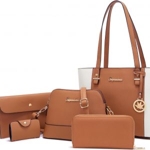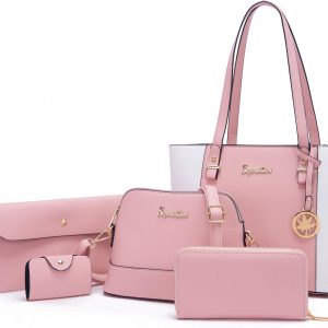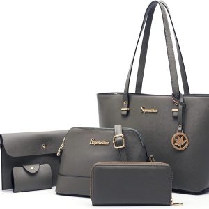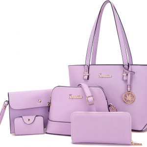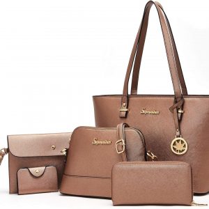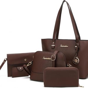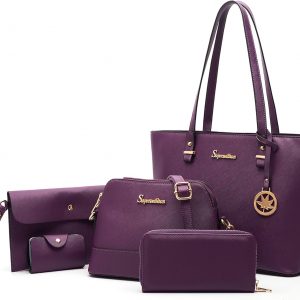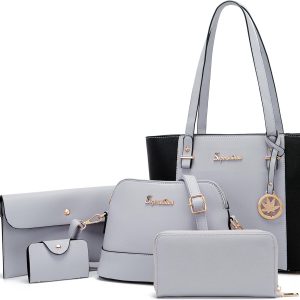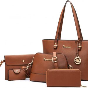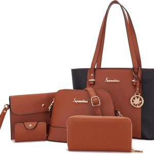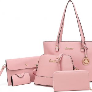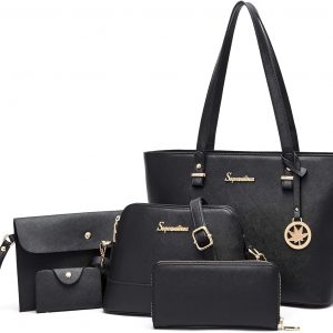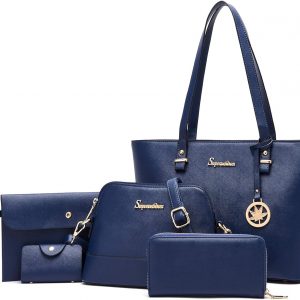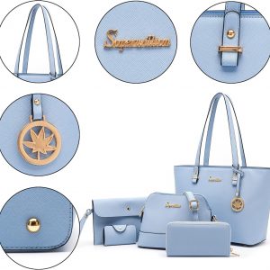 Soperwillton Handbags and Purses for Women Shoulder Tote Bags Top Handle Satchel Purse Set 5pcs
