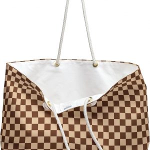 Summer Beach Bag Vacation Travel Tote Bag Reusable Bag for Pool Picnic Shopping Bag Gift Our oversized Weekender Tote is perfect for your weekend at the beach or in town. The wide-mouthed, durable bag holds a generous amount of personal items and is easily held by its thick rope handles. 100% Spun Polyester Exterior One size: 24″ x13″ (60.9 cm x 33 cm) Cream sheeting interior lining (50% cotton, 50% polyester) T-bottom Assembled in the USA from globally sourced parts Please note: Size tolerance 0.75″ (1.9 cm)