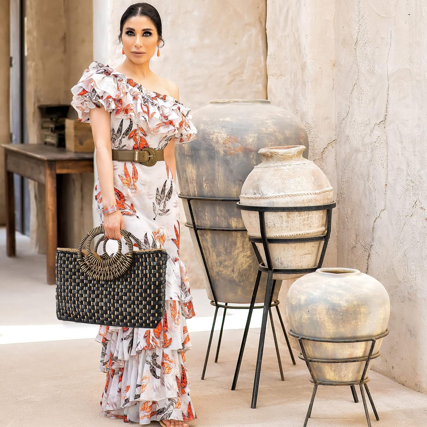 The handbag has a round handle, and the double-hardened design is not easy to deform, and it is durable during use. It is woven from high-quality straw, densely woven and carefully sewn lining.