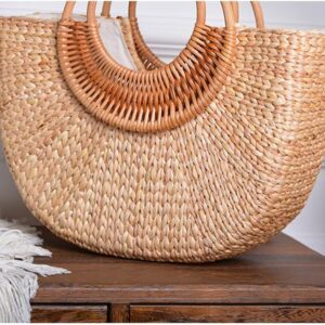 - ☆☆Various applications: You can use these large capacity bags both for outside use like shopping, outing, picnic, going beach vacation or as photo shoot props and home decoration. Its natural color matches well with every things. The original color of rattan and handmade crafts create a sense of retro and fashion atmosphere.