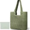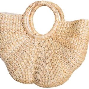 Ykybhx Women’s Straw Shoulder Bag Women Large Woven Bag Round Handle Ring Tote Purse Retro Handbags Summer Travel Beach Handbag Hand Woven Straw Large Hobo Bag Big Capacity Handmade Bag for Girls Women