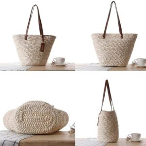 YIRENZUI Summer Straw Bags Women Handmade Woven Basket Shoulder Bags Beach Travel Large Capacity Tote Bags One Shoulder is Best
